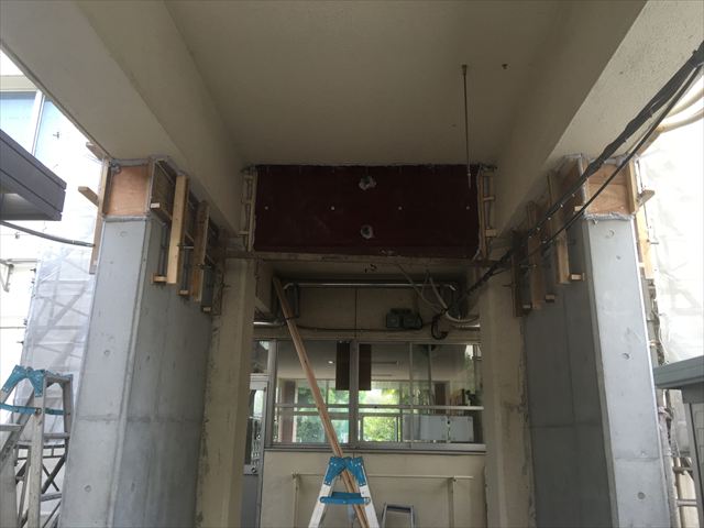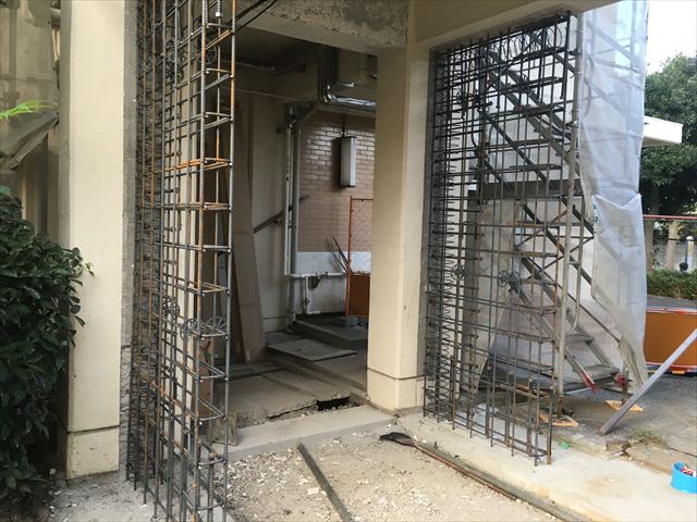 建築局平成28年度優良専門業者表彰:適正な工事施工、技術の向上及び専門業者の意欲向上等を目的として、建築局が工事監理した工事の中で、元請け業者に協力し、優れた施工技術により優秀な出来ばえで工事を完成させた専門業者の方々を表彰しています。本工事では弊社の協力会社2社が表彰されました。 渡り廊下の柱、梁、壁、基礎等の耐震補強工事を行いました。 横浜市建築局発注工事