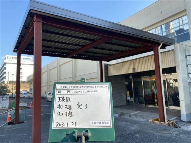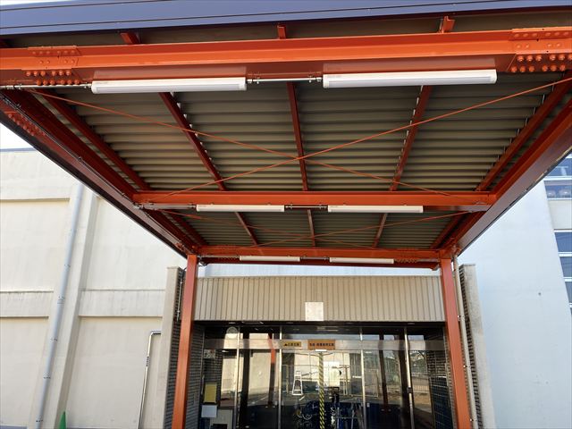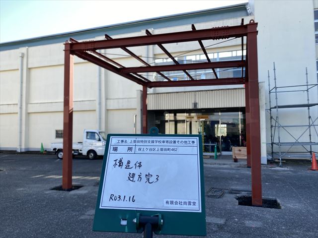 特別支援学校の既存庇を撤去し、お迎え用車寄せをS造で新築しました。