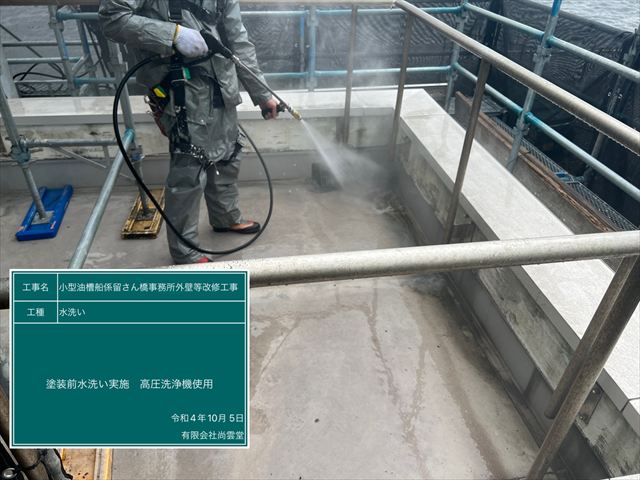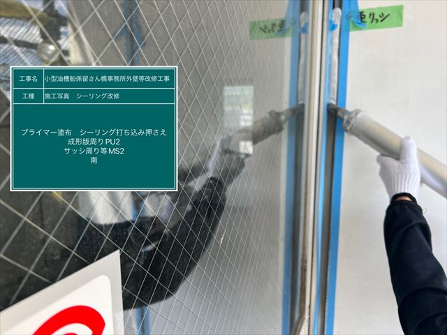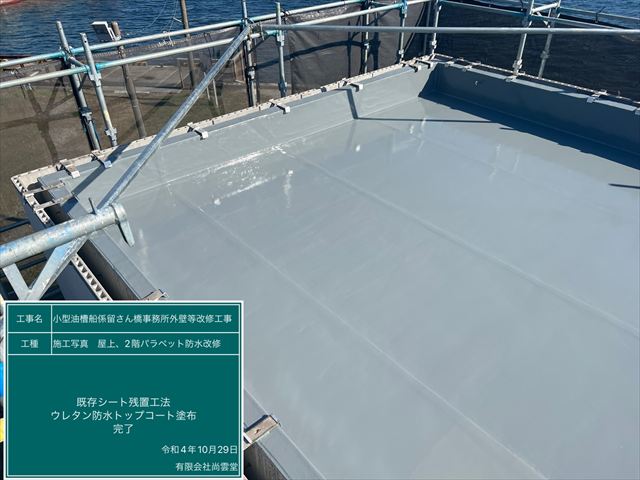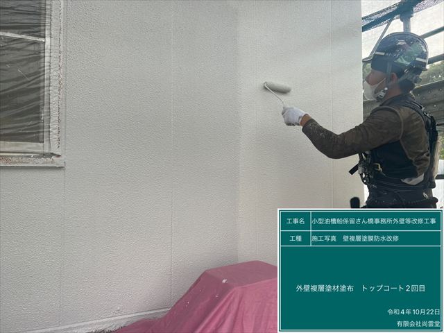 管理事務所の外壁防水塗装、屋上防水、建具改修工事を行いました。