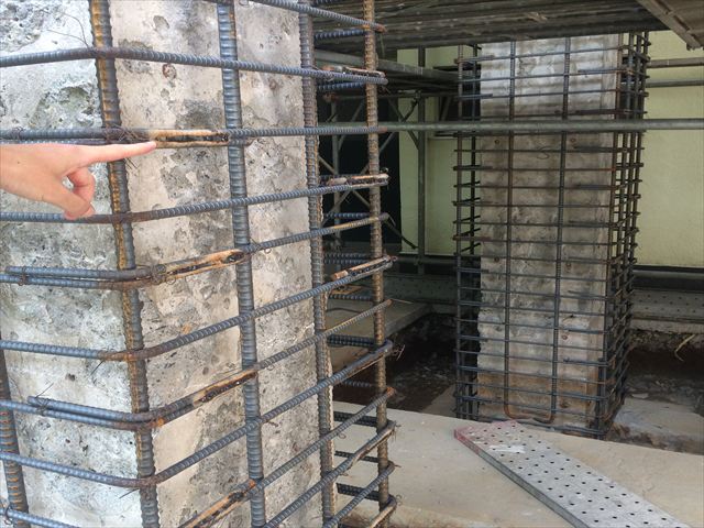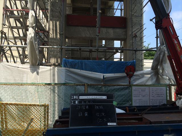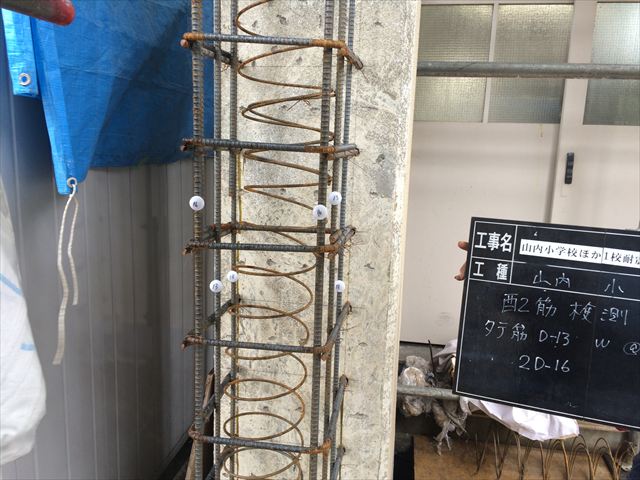 渡り廊下の柱、梁等の耐震補強工事を行いました。