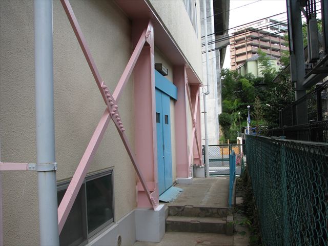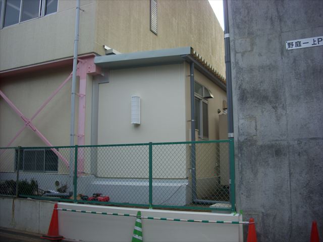 スポーツセンターの外部にS造で倉庫を新設及び体育室の塗装、内装改修を行いました。