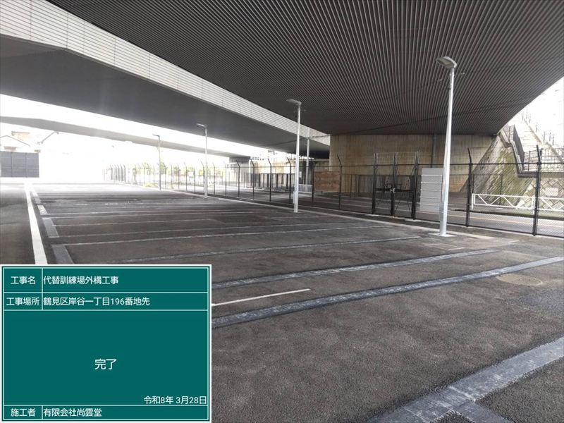 消防訓練場を改修しました。放水訓練の為の防水壁やフェンス改修、側溝、照明改修等の外構工事を行いました。